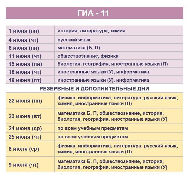 дополнительный день: иностранные языки (письменная часть), информатика, литература, русский язык, физика, химия |
